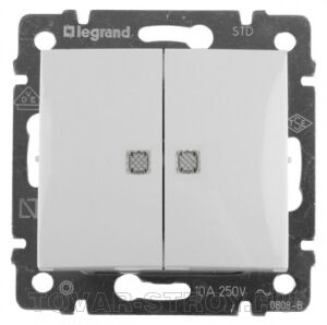 Выключатель Legrand 2-клавишный с подсветкой проходной, белый